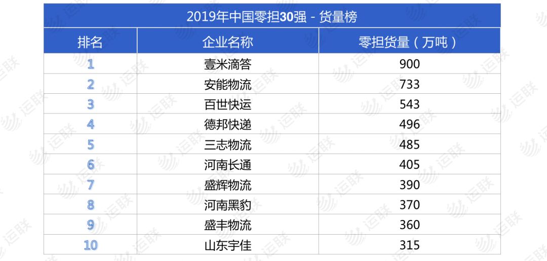 2019年中國(guó)零擔(dān)30強(qiáng)排行榜